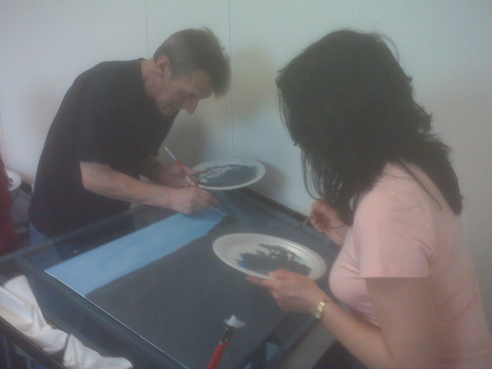 On the wall was our painting – a harbour with iceberg and some trees. It certainly did not look like a beginners painting, but George assured us all that we could do it. The atmosphere for learning was warm and playful, with an opportunity to smile and joke with other students as we all hesitantly took some of our brush strokes.
