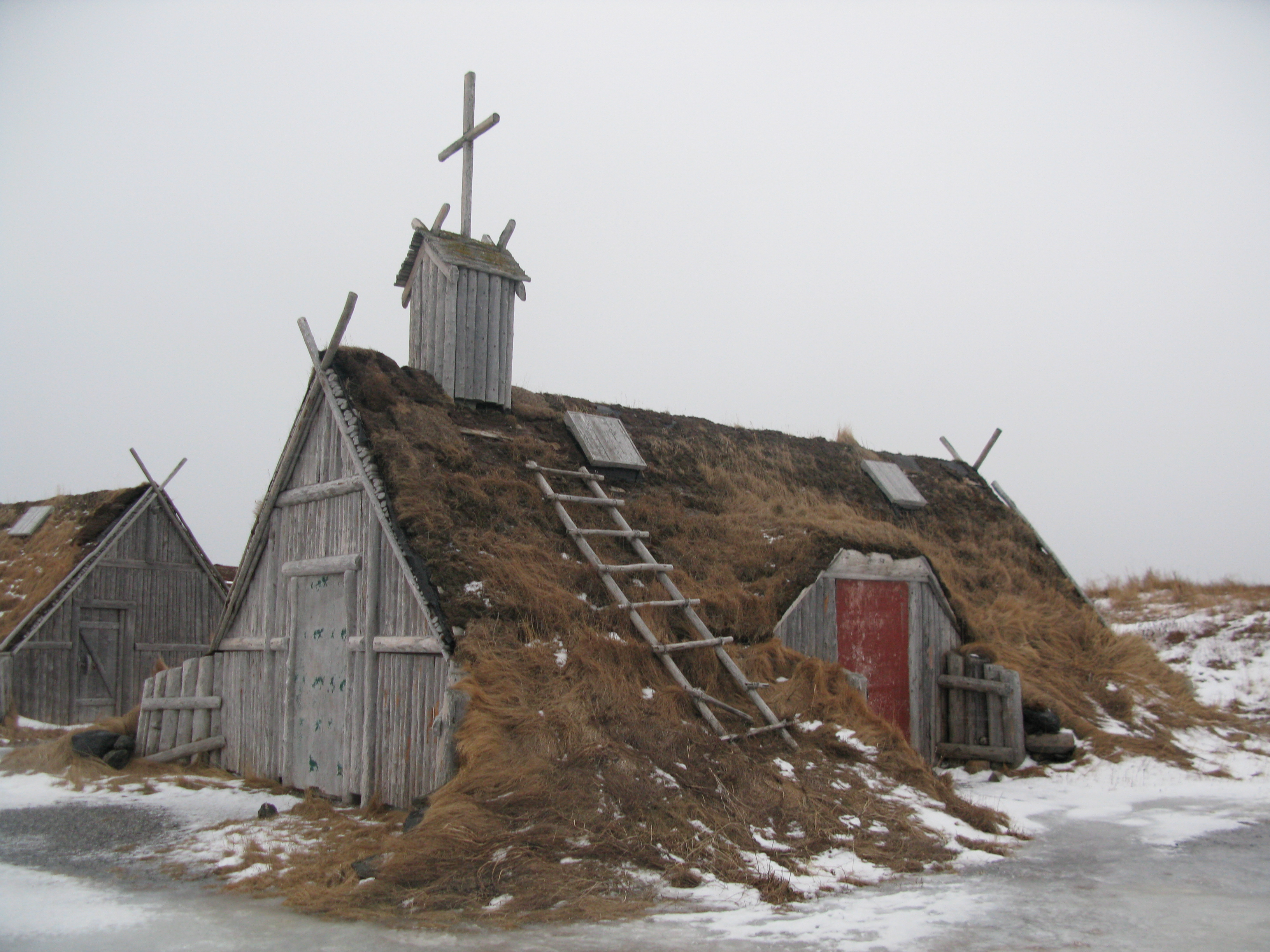 My European friends are posing by a symbolic rock that has an image of the viking ship. The long sod covered building in the background is home to the Snorri. The boat house boasts a life-size replica and was actively sailed from Scandinavia, Greenland, Markland and finally Vinland. During the summer season you would be greeted by the colourful Lambi, all too willing to explain the ship and viking life.